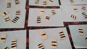 Figura 2. Fichas del juego “Allel-Kuzen” confeccionadas por los niños de Sala de 3.