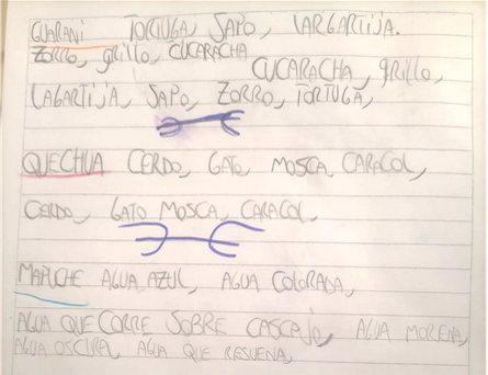 La idea de juegos originarios está presente en varias propuestas oficiales, por ejemplo, en los Cuadernos para el aula destinados a Nivel Inicial (Ministerio de Educación, Ciencia y Tecnología, 2006) se sostiene que “indagar sobre los juegos a los que jugaba un pueblo originario implica acercarse a sus formas de vida: saber dónde habitaba, qué actividades realizaba, cómo se vestía, etcétera” (p. 44). Sin embargo, en el caso observado no se profundizó en el abordaje de su contexto de uso y las características del pueblo mapuche.