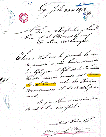 [10] En 1881 se estableció la comandancia de Frontera de Santiago del Estero al mando del coronel Olmedo, aunque su funcionamiento se extendió hasta 1884.