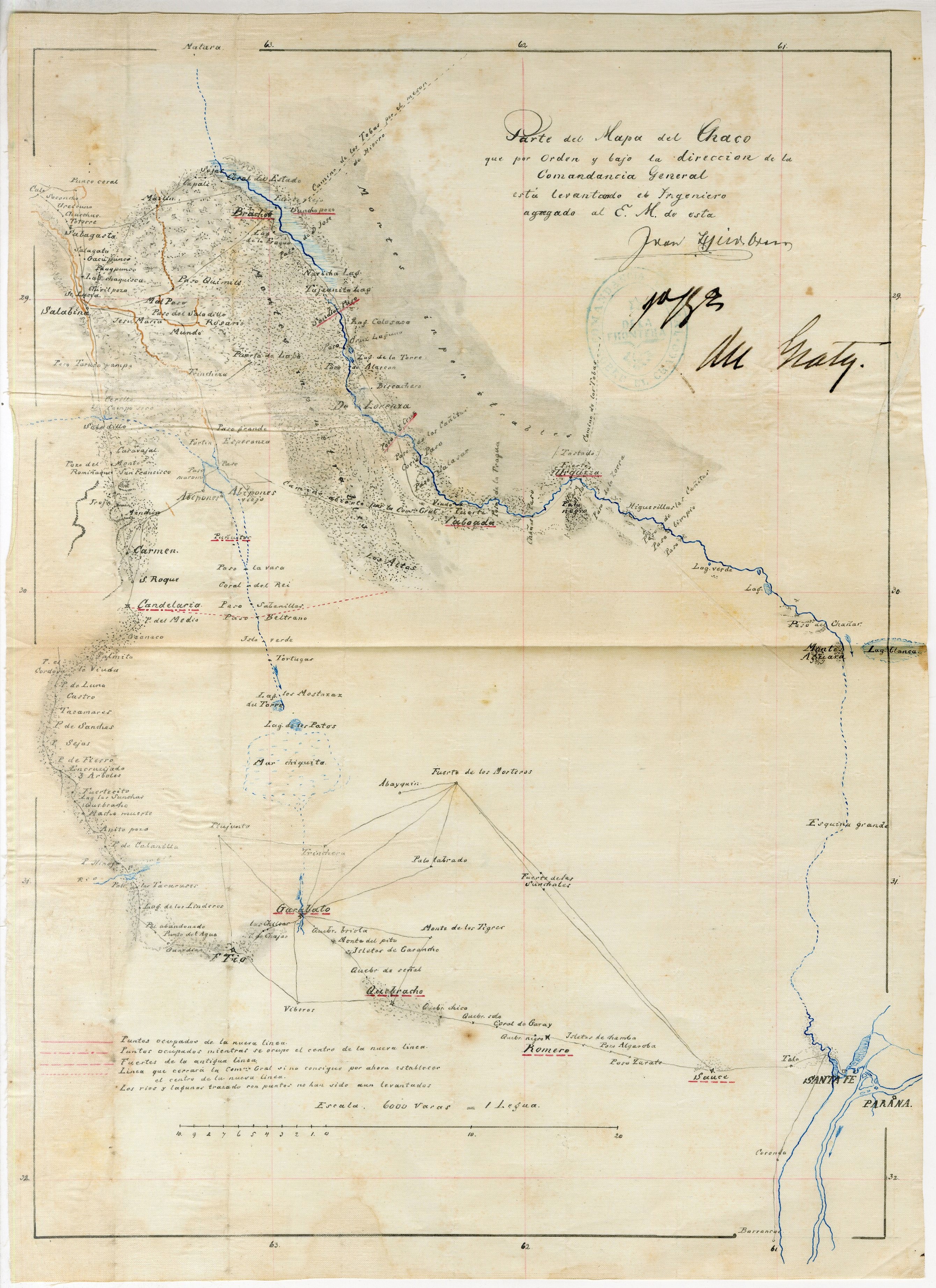 Parte del mapa del Chaco que por orden y bajo la dirección de la Comandancia General está levantando el ingeniero agregado al E.M. de esta.] Sin fecha.